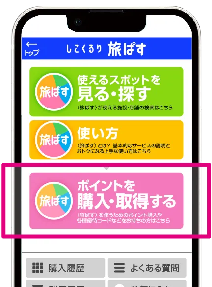 ※旅ぱすポイントは、6ポイント(2,400円)を1口として、最大5口(30ポイント)まで購入可能です。